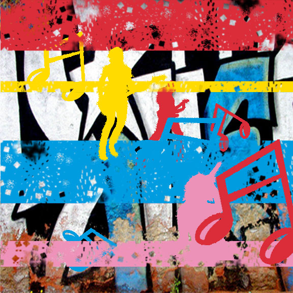 For this project we had to basically rearrange everything on here. The other background was a rainbow tie-dye, but I choose to do this graffiti background instead because it looked cool and sketchy plus it blended in the colors. I also liked how we had to erase parts of the stripes because it adds to the graffiti background. What I don't like about this one is that it really doesn't focus on the music aspect of this project.